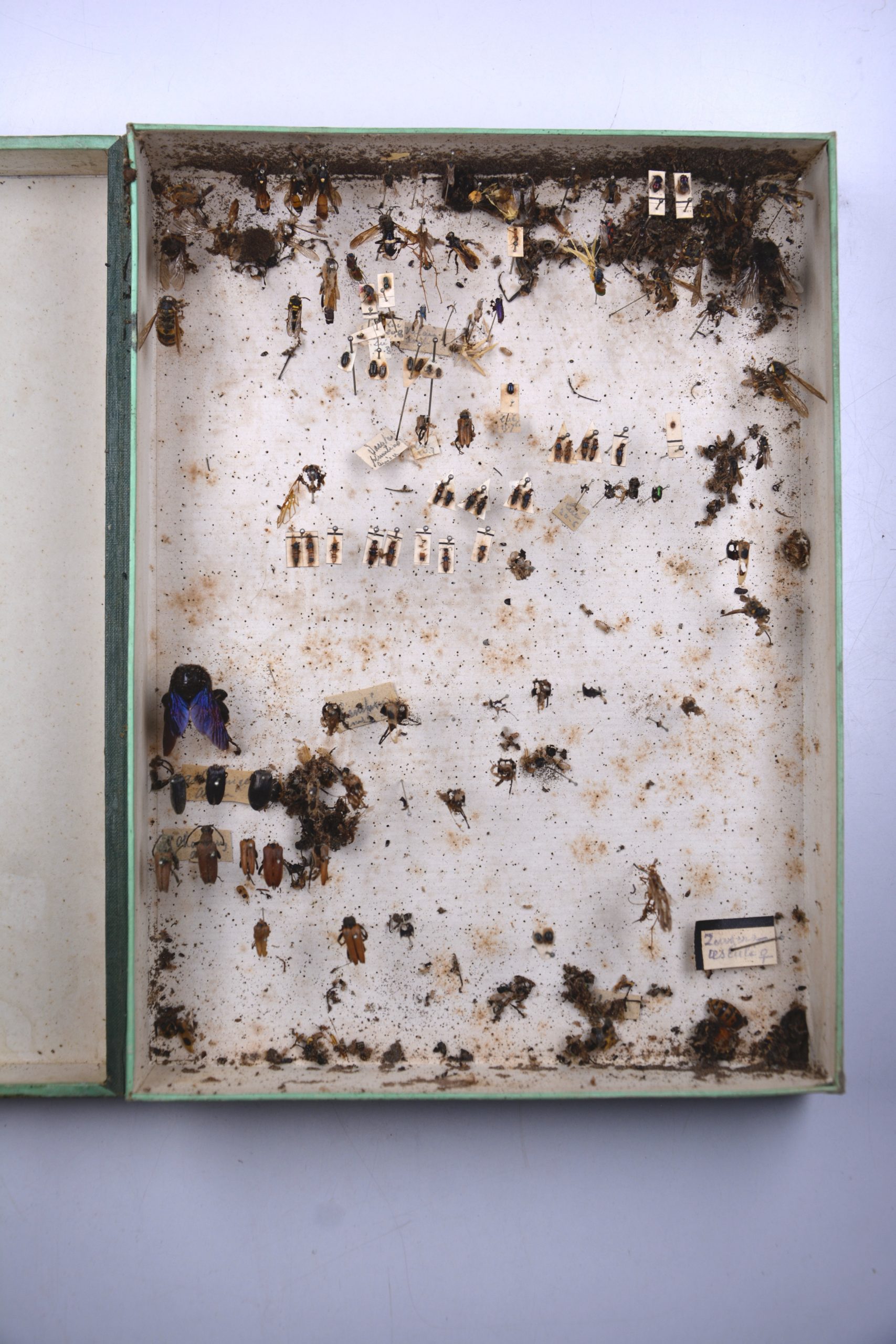 Dépoussiérage léger. Recollage si identification certaine des morceaux de spécimens. Passage à l’alcool à 70 des spécimens moisis.